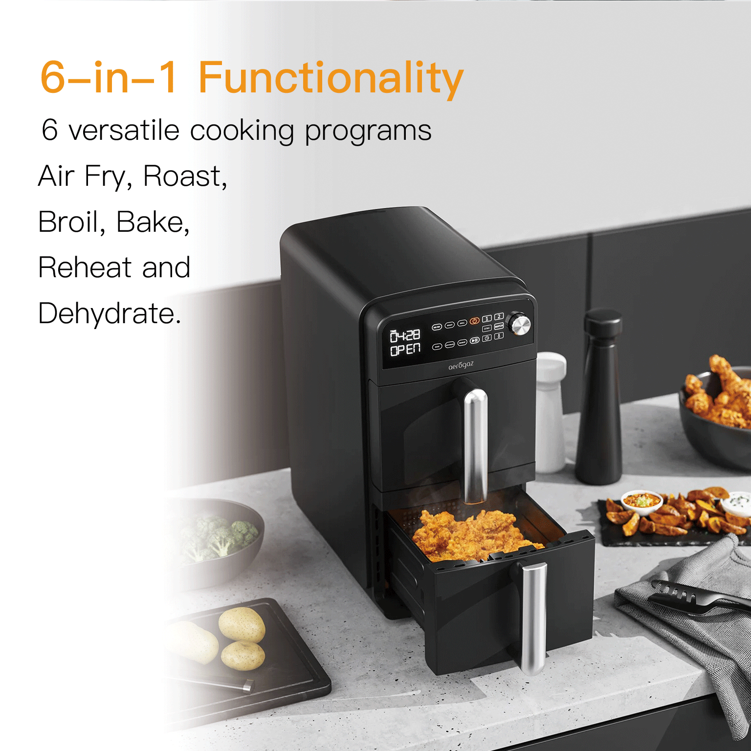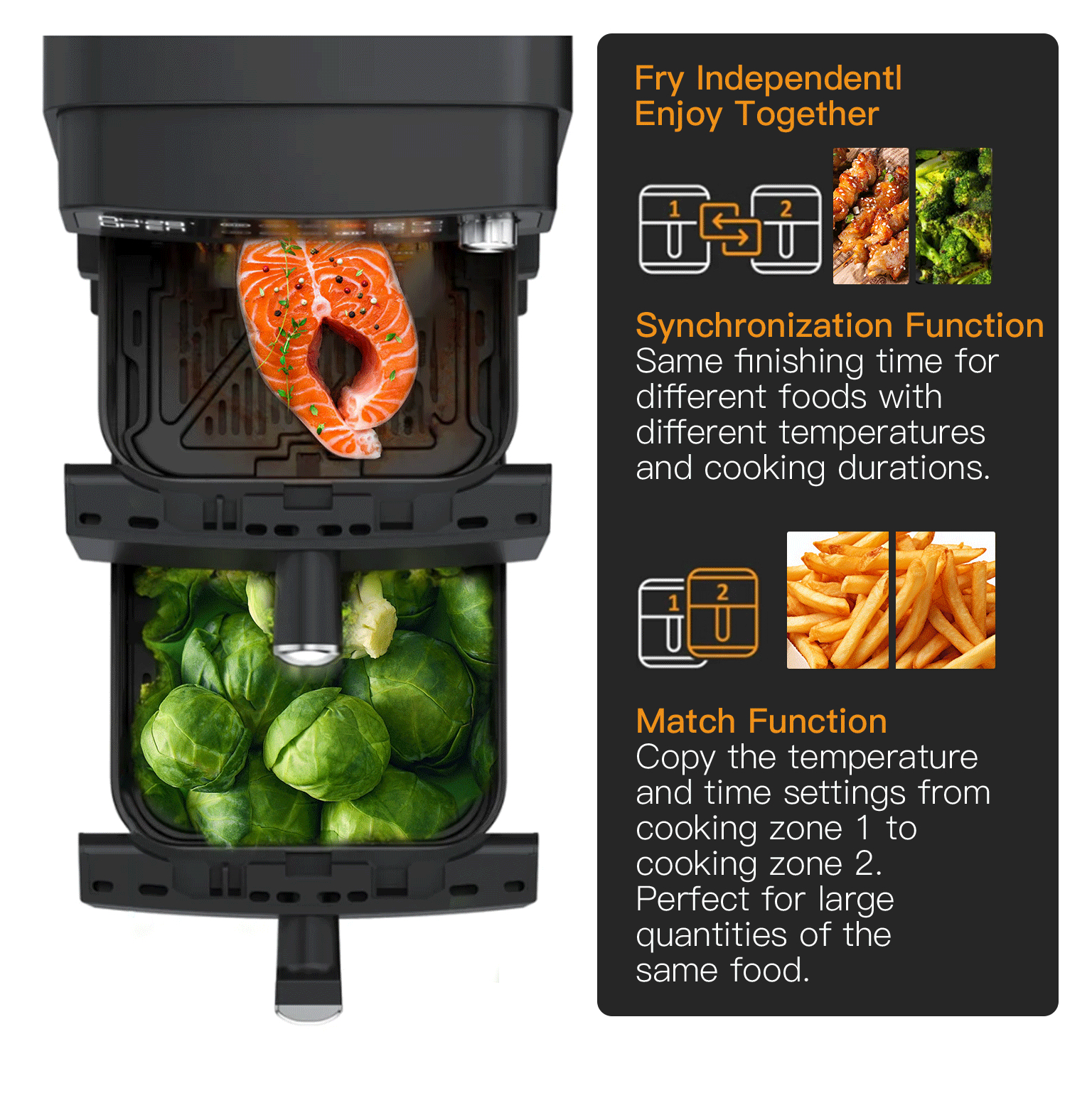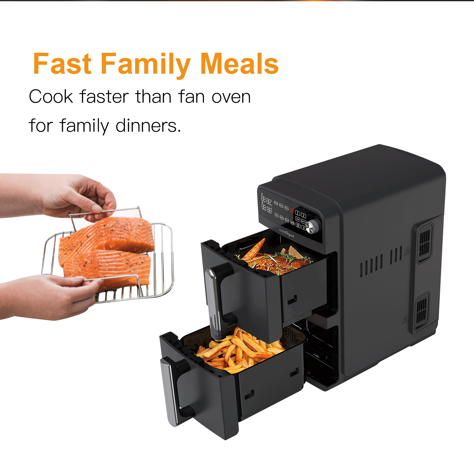 • 2×5.5L Frying baskets (Dual Stack)